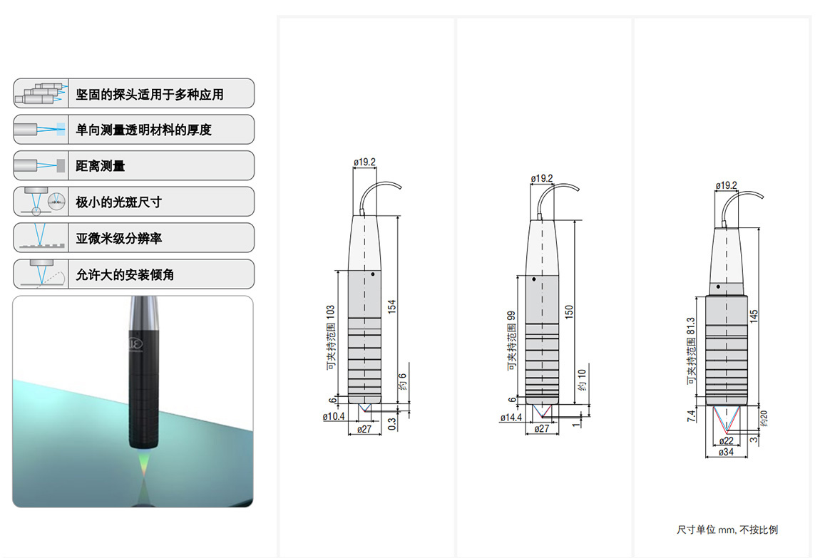 ● 除了反光與透明表面的距離測量以外,該傳感器還可以用于單向測量清潔薄膜,板材或多層結構的厚度