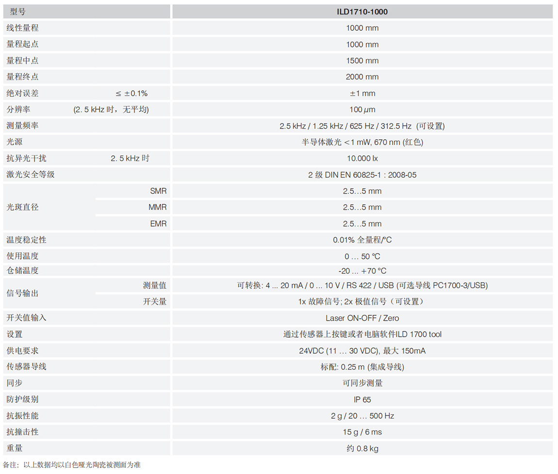 大量程激光位移傳感器optoNCDT 1710可以提供全球范圍內無(wú)與倫比的測量性能。測量范圍可達1,000mm。測量的起始點(diǎn)是距離傳感器1,000mm的位置, 這意味著(zhù)1710可以測量距離為2m的物體??刂破鞅患傻絺鞲衅魍鈿?,從而使得不需要外部的處理電路。傳感器還具有自動(dòng)的實(shí)時(shí)表面補光技術(shù)(RTSC)。 除此以外,內置的可調限位開(kāi)關(guān)帶給該傳感器更大的靈活度。