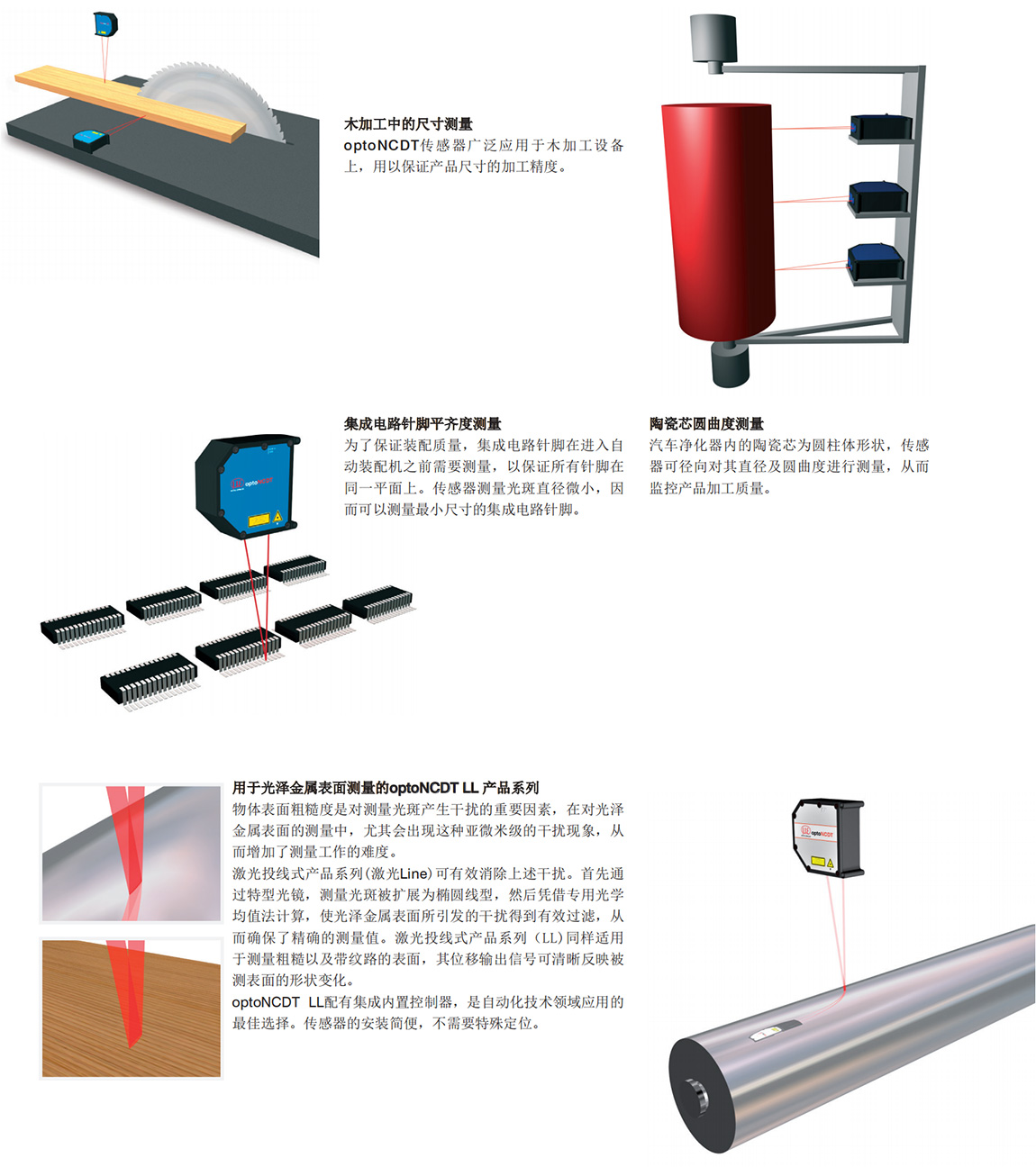 optoNCDT1420緊湊型激光三角反射式位移傳感器集速度,小巧,高性能和靈活性于一體。雖然屬于輕量級傳感器范疇,但仍然集成了控制器,optoNCDT1420被設計為適合動(dòng)態(tài)測量,且可以被安裝在極小的空間內。多樣的連線(xiàn)方式,加上緊湊的外形尺寸,將傳感器安裝的難度降到最低。與德國米銥公司所有激光三角反射式位移傳感器一樣,optoNCDT1420提供了智能表面調節功能。源于獨特的自動(dòng)目標補償功能 Auto Target Compensation (ATC),當被測物體的顏色或者亮度發(fā)生變化時(shí),傳感器都能獲得穩定的測量結果。高性能光學(xué)系統,可以發(fā)出更小的測量光斑,從而檢測到被測物體表面最細微的變化。